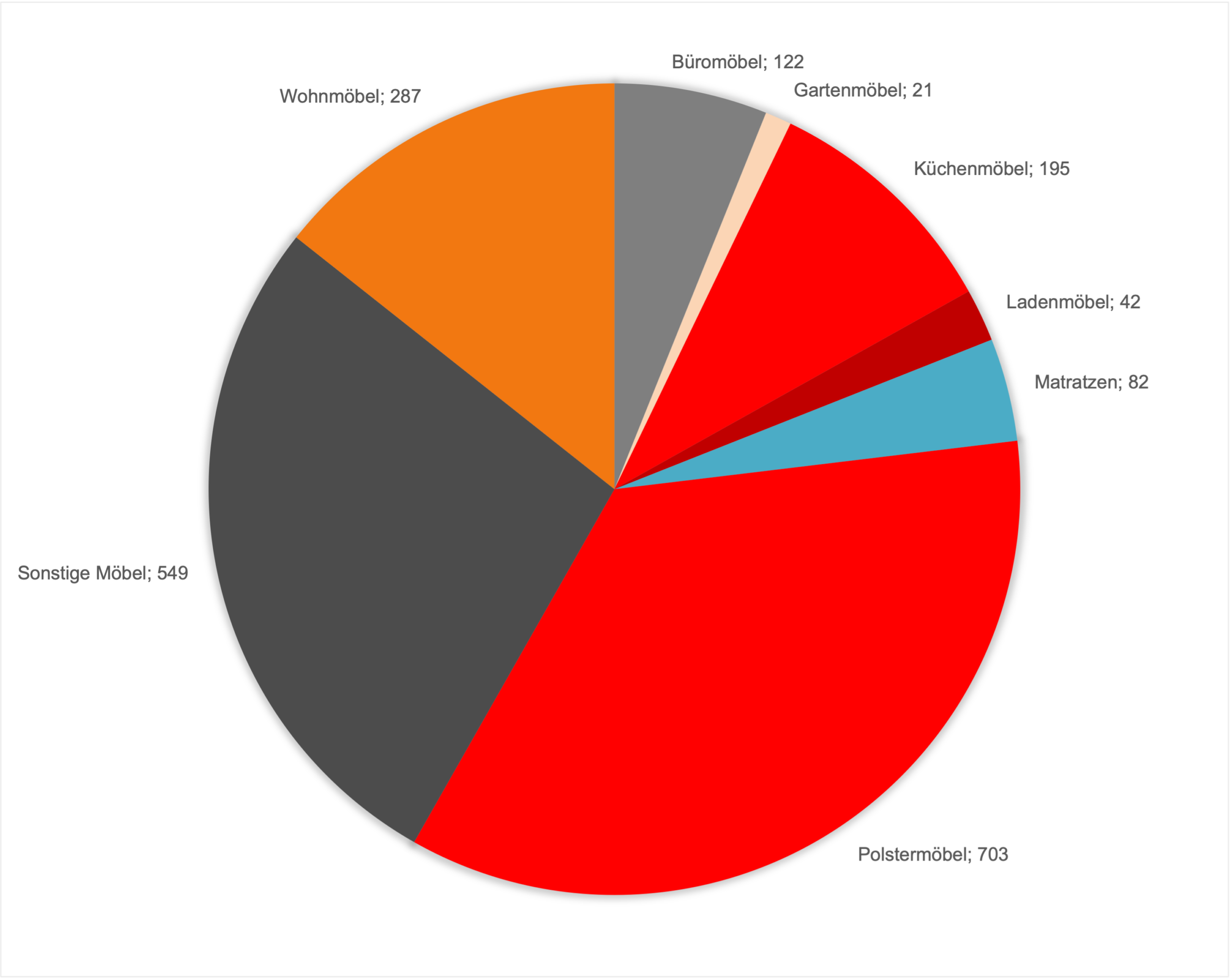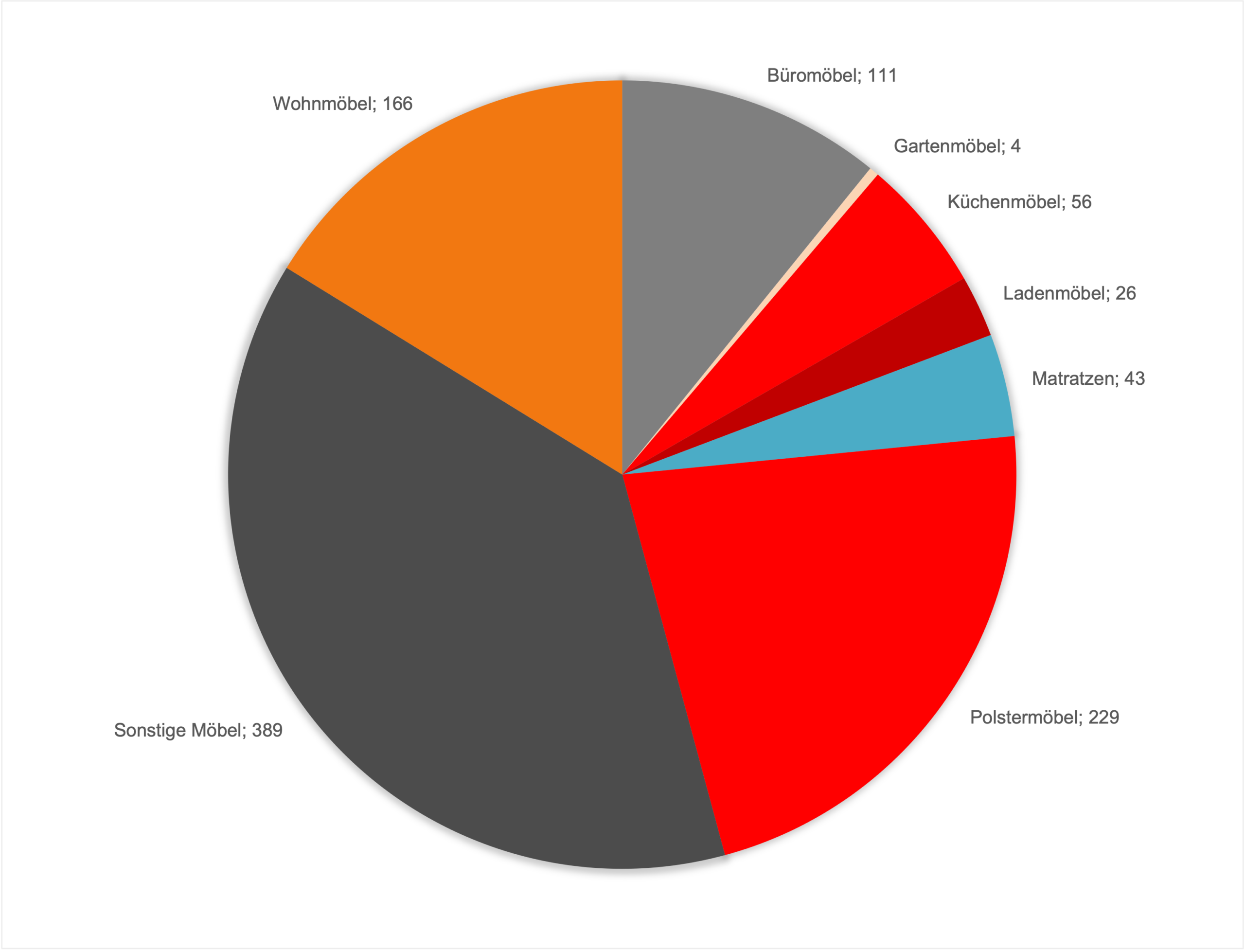 Den größten Anteil am Produktionsvolumen stellen die Teilbranchen „sonstigen Möbel“, „Wohnmöbel“, „Büromöbel“, „Küchenmöbel“ und „Ladenmöbel“.
